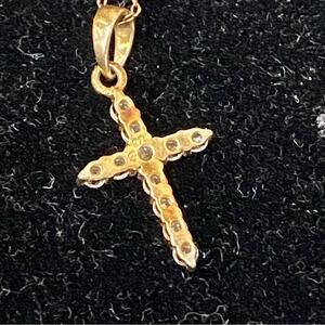 Dainty CZ cross Pendant Necklace signed sterling with gold wash (vermeil)