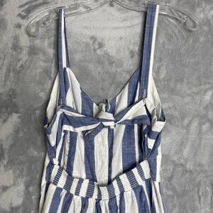 Japna Wide Leg Blue White Stripe Jumpsuit Women S Cotton Tie Back Preppy Coastal