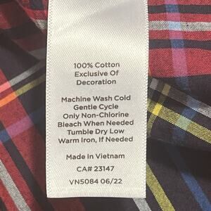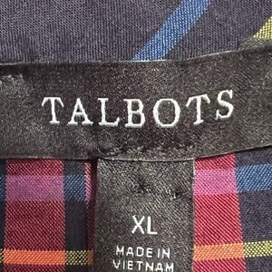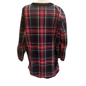 Talbots Velvet Trim Top Red Plaid Long Sleeve Split Neck Womens XL Christmas
