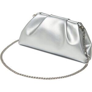 🆕Women's Silver Soft PU Leather Clutch Purse Elegant Formal Evening Bag