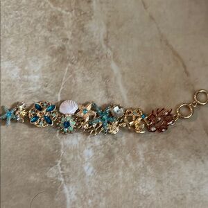 This stunning bracelet features a beautiful gold and blue starfish design, perfect for adding a touch of elegance to any outfit.