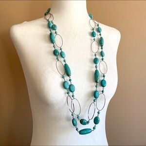 Vintage turquoise howlite stone bead and silver metal chain necklace.