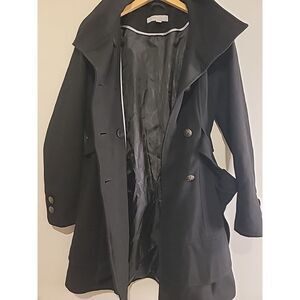 New York & Company Double Breasted Wool Blend Topcoat Small Belted Peacoat Metal