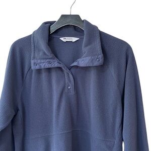 Outdoor Research Women’s Trail Mix Snap Pullover in Naval Blue. Climb or bike in comfort thanks to this snap fleece. ActiveTemp treatment is thermoregulating to keep you cozy. Fabric is wicking and quick drying for active lifestyles.