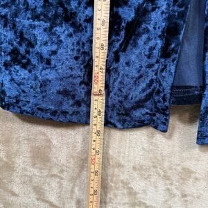 Navy Blue Jewel Tone Crushed Velvet Longline Cardigan Duster | Open Front | Sm