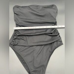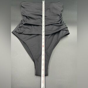 Shade and shore black ribbed one piece swimsuit with removable straps. Size M. High legs cheeky bottom. NWT retails for $25.