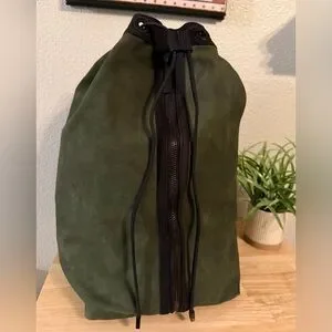 LAMB Nubuck Green Leather w/Black 1-Strap Sling BackPack Excellent Condition!!