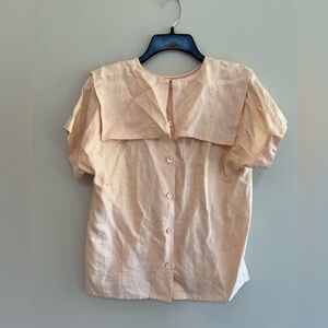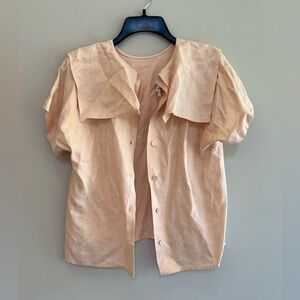 Exclusively For Saks Fifth Avenue Vintage 100% Linen Button-Up Short Sleeved Peach Blouse