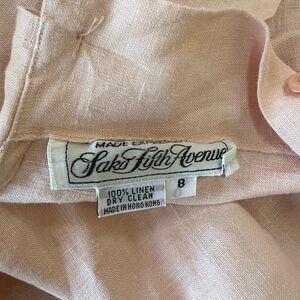 Saks Fifth Avenue Vintage 100% Linen Button-Up Short Sleeved Peach Blouse, 8