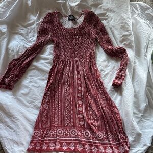 Chic long sleeve dress with intricate red pattern. Never worn.