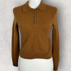 Aritzia 100% Cashmere Brown Polo Sweater Womens Size Medium Chestnut Knit Boho M