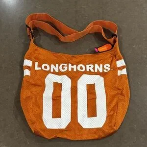 NEW Texas Longhorn jersey bag/purse. Button closure. 16” wide. 14” tall. 2 small pockets inside.