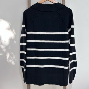 Aerie V-Neck Collar Sweater Long Sleeve Black White Stripes Women’s NWT Size M
