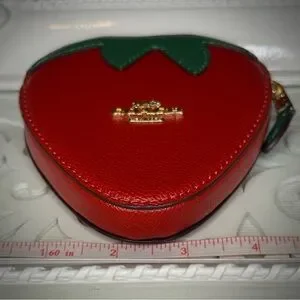 Coach accessory Charming strawberry design. Vibrant red and green colors. Perfect for stylish organization.