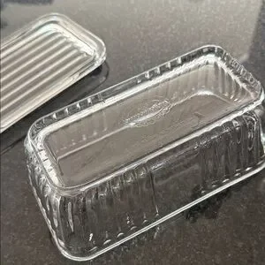 Elegant clear glass storage container with a lid. Perfect for kitchen organization.