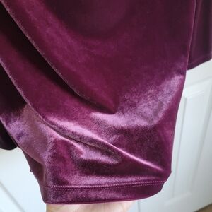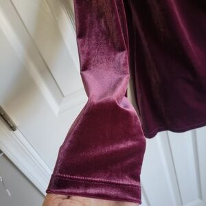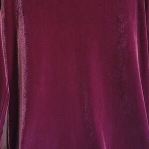 Luxuriously soft velvet or velour feel fabric thay has some stretch. Decorative side slits at hips.