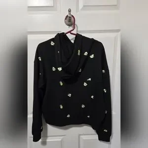 Scotch and Soda recycled embroidered black hoodie with flowers