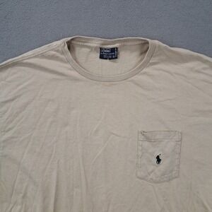 Keywords: Polo Ralph Lauren, T Shirt, Pocket Tee, Mens, XL, Beige, Cotton, USA Made, Casual, Classic, Preppy, Vintage Polo, Polo Sport