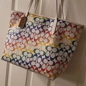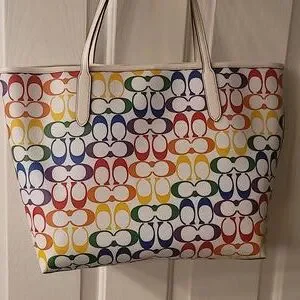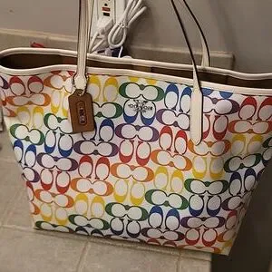 Authentic Coach signature pattern pride XL tote, new with tags, good condition, non-smoking, sanitized, inner pocket, stunning Coach bag.