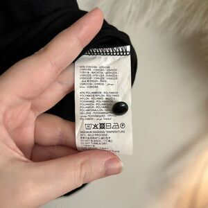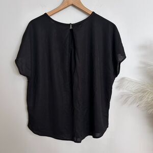 Details: I purchased this in Milan Italy, but never wore it! It's the perfect slightly scooped flowy sleeve top with a material that feels flowy and cooling and not rough at all. Slightly oversized/loose fit. Cute button detail on back