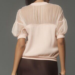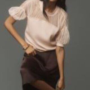 Maeve Anthropologie Inset Shoulder Pullover Knit Top Medium Pink Mesh