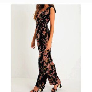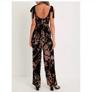 Lulus Black Velvet Floral Jumpsuit Moody Hues Edgy Dark Coquette Size Small EUC