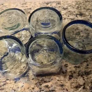 Blown Glass from Mexico Vintage CobaltBlue Rim Set of 4 Tumblers - see below