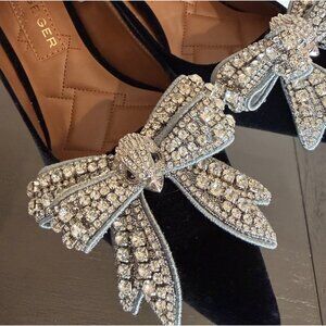 Beautiful black velvet heels with rhinestone bow on the front. Lots of sparkle & bling