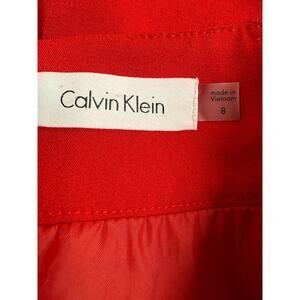 Calvin Klein A Line Midi Skirt Womens Size 8 Pockets Red Lined Event Holiday