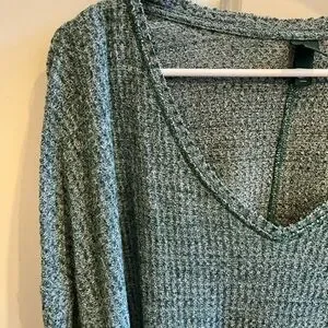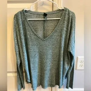 Stylish V-neck sweater. Ribbed texture. Long sleeves. Perfect for layering.
