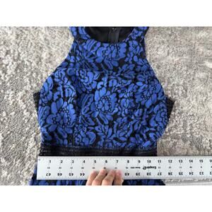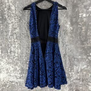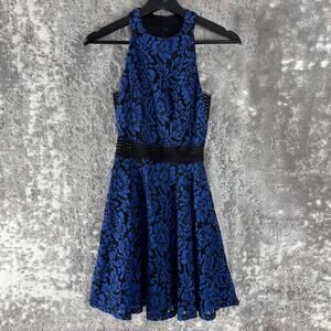 City Triangles Sz 0 Floral Lace Fit Flared Mini Dress Blue Sleeveless Zip Lined