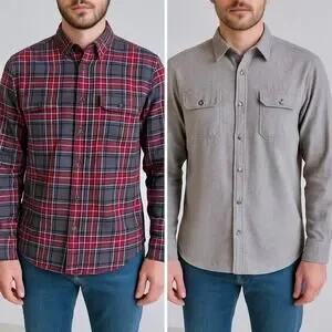 BUNDLE of TWO Woolrich Long Sleeve Button Down 100% Cotton Flannel Men L Shirt Red Gray