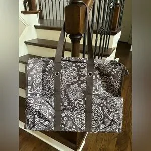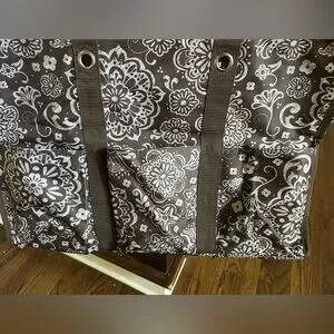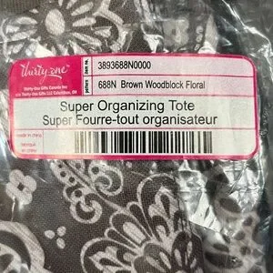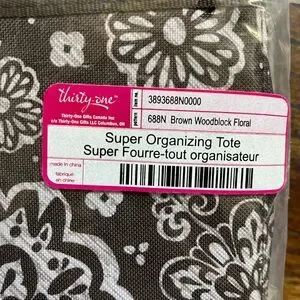 thirty-one New in Bag Super Organizing Tote in Brown Floral Woodblock