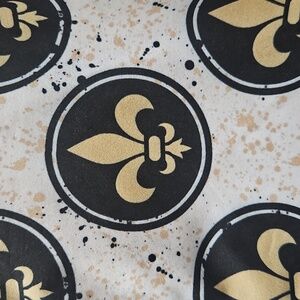 Boys New Orleans Saints short sleeve shirt with a fleur-de-lis pattern. Features a button-up front.