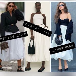 Emerson Lang Elegant Chic Modest Balloon Midi Maxi Bubble Minimalist Skirt Large