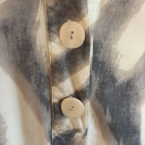 Elevate your wardrobe with this stylish women's top. Featuring a chic gray and white pattern, this top is perfect for any occasion. Enjoy comfort and style with its elegant design. This top is a super soft Rayon and has POCKETS! Fits like a tunic top. Cute sleeve details.