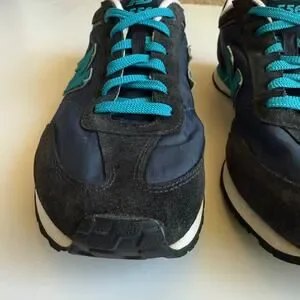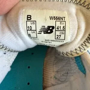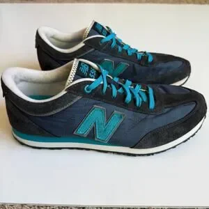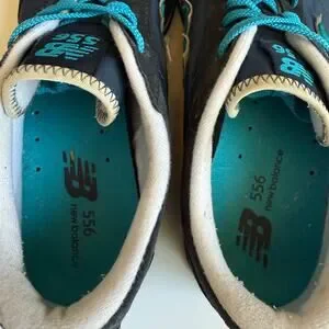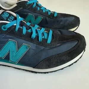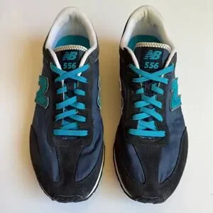 Women's size 10 New Balance 556 V1 Sneaker. A navy blue and turquoise casual, retro-inspired sneaker designed for everyday wear. Low-top silhouette with mesh to help with breathability and comfort. Suede N. Durable rubber outsole with plenty of traction left. No major flaws, light wear. Great used condition.