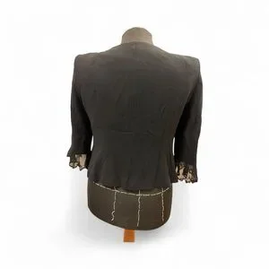 ! DISCLAIMER: I ATTACH SECURITY TAG AND VIDEOTAPE PACKAGING PROCESS ON EVERY SOLD ITEM! BUNDLE UP AND SAVE ON SHIPPING Sophisticated vintage black blazer with lace trim. Ideal for versatile styling.100% wool. Perfect condition