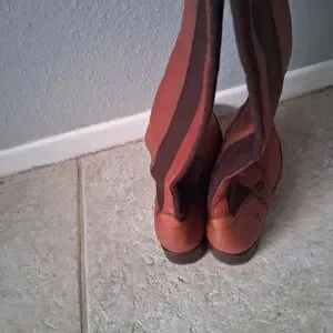 Elegant Frye boots with a rich brown and tan color scheme. Perfect for cold weather.
