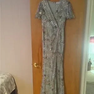 Dazzle in this sequin floral maxi dress. Perfect for special occasions. Features a wrap style and short sleeves. Brand new with tags.