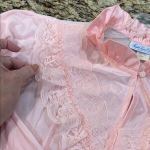 The 70s nightgown has been packed away in my mom’s drawer in plastic in case you needed it sometime when she was visiting somewhere or in the hospital. I’m told women used to do that back in the day.🤣 it’s in perfect condition. It has beautiful satin accents and wide border, beautiful lace, and a beautiful pearl button at the neck.