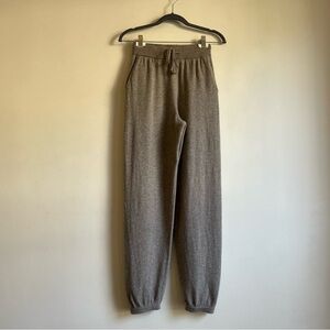 The fabric tag came undone so I cannot be certain of the fabric content. The style and color look exactly like the joggers in the stock pictures I used - which are pure wool. I am thus selling it "as is" with an unknown knit fabric that feels super soft.
