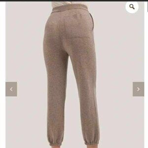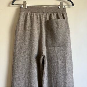 Sweatpants style. High rise. Loose fit but slim silhouette. Tapered leg. Elasticated waistband with drawstring. Light gathering detail at waist. Back patch pocket. Elasticated hem. Unlined, no sheerness. Lightweight, super soft (cashmere-like softness) knit fabric with natural stretch. Handwash cold (30 min. max. with detergent for delicate fabrics, dry flat only).