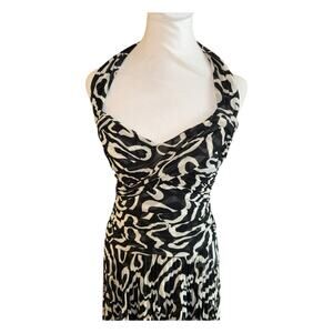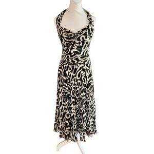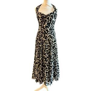 Vintage Escada Silk Halter Midi Dress Size 36 Us 6 Drop Waist Black White Gown
