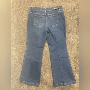 Chic authentic blue jeans with a flattering flare. Perfect for versatile styling.