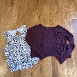 Keywords: Athleta, Tank Top, Long Sleeve, Shirt Set, Workout, Gym, Activewear, Medium, M, Purple, Plum, Floral, Layering, Athleisure, Fitness