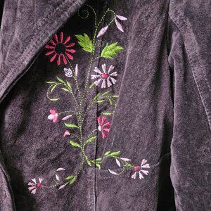 Live A Little Suede Brown Embroidered Floral Velvet Blazer Boho Jacket Size M