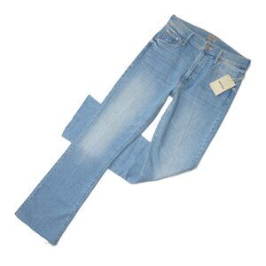Details: * Just checking in. This iconic high-rise bootcut has an ankle-length inseam and a frayed hem. Cut from a blend of recycled stretch denim, Friendly Reminder is a light-blue wash with whiskering and fading. This style runs small. MOTHER suggests sizing up. 5 pocket. Button and zipper fly. Machine wash. Made in USA. *