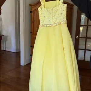Charming yellow dress with floral accents. Ideal for formal occasions.