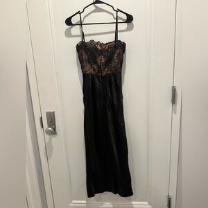 Nikita Black Satin and Lace Corset Dress Detachable Rose
